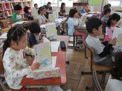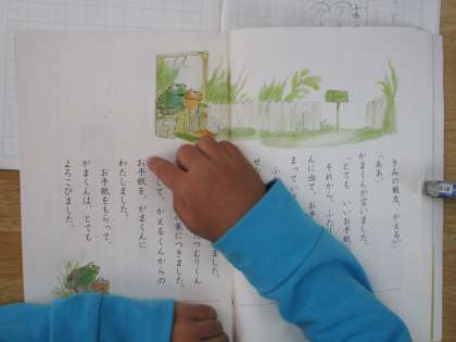2年生の国語で、「お手紙」の学習をしています。がまくんとかえるくんの、のどかであたたかな世界に親しんでいます。役割を決めて、音読していました。
