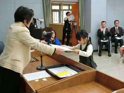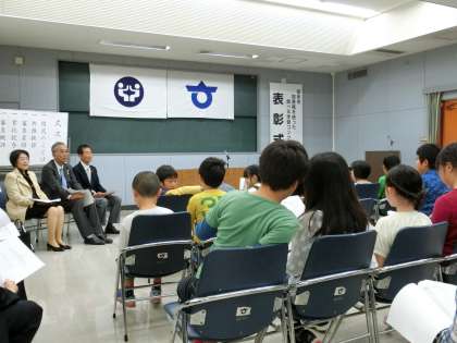 今日は知多市立中央図書館で、「知多市図書館を使った調べる学習コンクール表彰式」がありました。八幡小からは、優良賞1名、佳作2名が表彰されました。