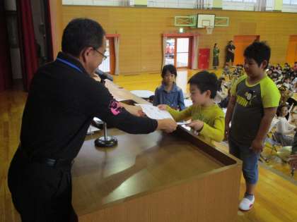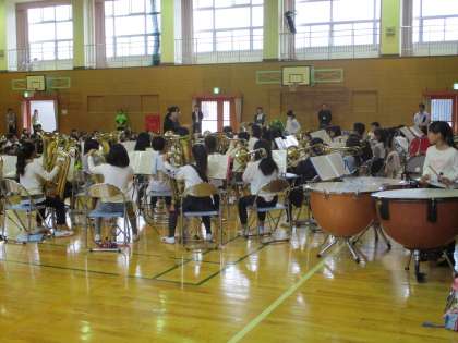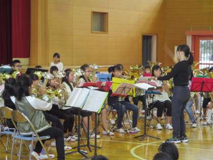 いつものように校長先生と元気よくあいさつをし、表彰の紹介し、その後、金管部の演奏を聴きました。10/21(土)に開催される小中音楽祭で演奏する「悠久の地」です。小学生の演奏とは思えない、迫力あるすばらしい演奏でした。週のはじまりから、たいへんよいものを見させていただきました。金管部のみなさん、当日まであとわずかです。この調子でがんばってください。