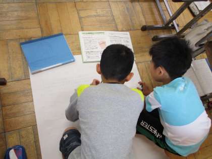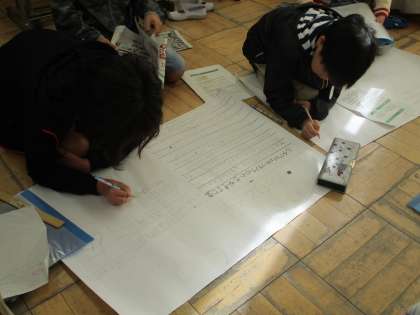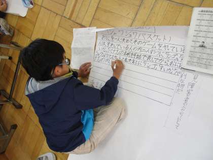 4年生の総合的な学習です。福祉実践教室も含めて福祉について学習を進めてきた4年生。グループごとにテーマを決め、自分たちで課題を追究してきた成果をまとめています。