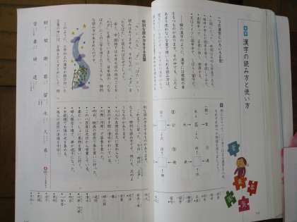 5年生の国語で、「漢字の読み方と使い方」という学習をしていました。一つの漢字にいろいろな音(おん)がある例として、「留」なら、「兄はドイツに留学中で、しばらく留守だ」といった学習です。また、特別な読み方をする漢字として、「七夕」などがあるという学習もしていきます。