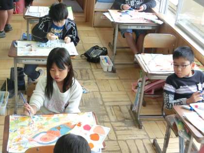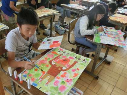 図工の時間に取り組んできた読書感想画もいよいよ完成のときを迎えました。