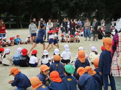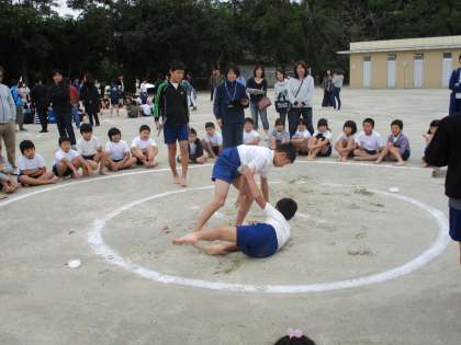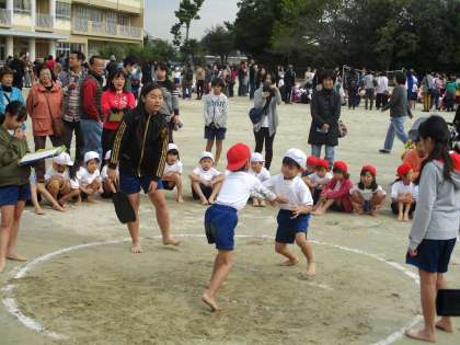 1年生ははじめてのすもう大会。今までの練習を生かしてがんばっていますね。2〜3年生は、大会の雰囲気を分かっているので、気合いの入り方が違います。地域の保育園の児童も応援に来てくれました。