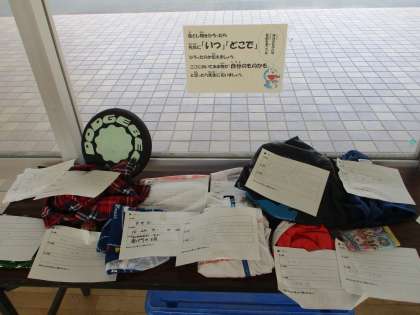 また、中央昇降口には、落とし物が置いてあります。子どもたちに呼びかけてもなかなか持ち主が現われないものもあります。一度ご確認いただければと思います。
