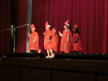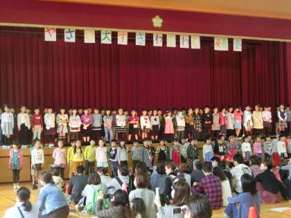 たくさんの保護者のみなさんが応援して下さる中、いままでクラスで協力してつくってきたものを、いきいきと発表できました。