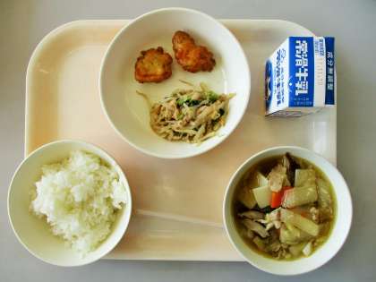 久しぶりの給食のように感じました。先週の木曜に食べて以来となりますね。ワンタンスープ+ごはんで、いつもよりボリュームのある給食のように感じました。いかフリッターがサクサクとして、やわらかいワンタンとの相性がよかったです。