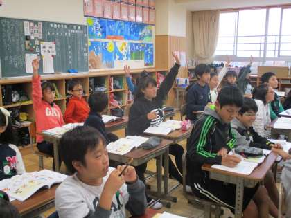 6年生の理科で、水溶液の学習に入りました。今日は、今後実験をして性質を調べていく予定の、うすいアンモニア水、うすい塩酸、炭酸水、石灰水、食塩水について、においがあるかどうか、色はあるかどうか、蒸発するかどうか、予想を立てていました。今までの経験や勘だけを頼りに予想を立てていましたので、いろいろな予想がありました。これから実際に実験・観察をして、正しく理解していきます。