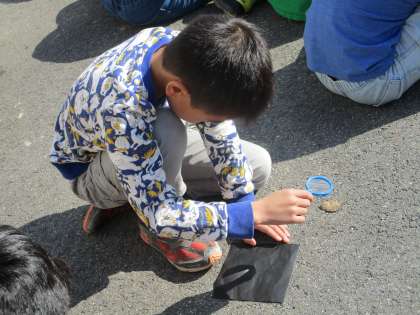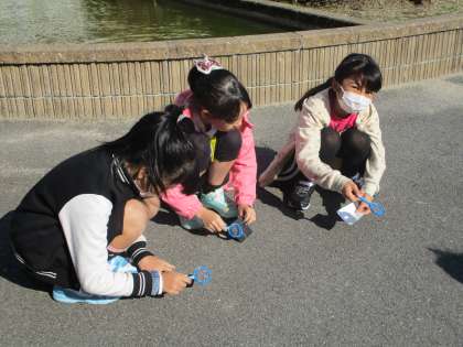 3年生の理科で、「虫めがねで集めた光」という学習に入りました。理科の学習ですので、まず教室で予想を立てました。そして、安全面の確認をした後、外に出て実験をしました。虫めがねで太陽の光を集め、黒い折り紙に当てていましたが、大きく集めた光と、小さく集めた光ではどんな違いがあったでしょうか。保護者のみなさまもなつかしく感じる実験だと思います。