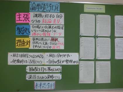 ここでは、「『未来を拓く力』を育成する教育課程の開発」いうテーマで研究を進めていました。目を引いたのは、「未来思考科」という新教科を独自に開発して取り組んでいる点です。未来思考科は、生徒の思考力を育成することを目的にしています。例えば、「100年後のオリンピックにおける男子と女子の100m走の優勝タイムは何秒になるだろうか」という学習課題に対して予想し、根拠をもって議論していきます。