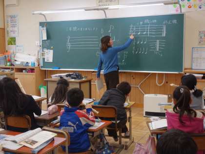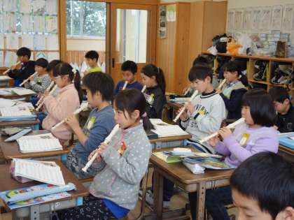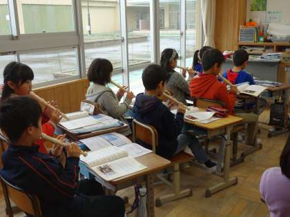 3年生の音楽です。1年間のまとめということで、リコーダーで「聖者の行進」をパートごとに分かれて演奏していました。リコーダーの音の出し方のポイントを復習したあとに、演奏していました。とってもきれいな演奏でした。