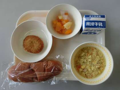 黒ロール コーンたまごスープ コロッケ ナタデココポンチ 牛乳