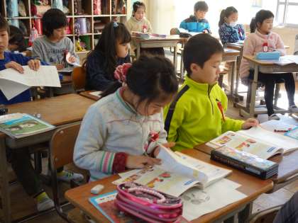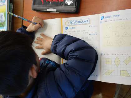 2年生の算数です。教科書にある「もうすぐ3年生」や「もっとふくしゅう」といった、今までならったことを復習するページに入っていました。かけ算や図形など、1年生とはずいぶん違う内容を学んだ1年間でしたね。「わからないところがあったら質問しましょうね」と先生が声をかけたら、すぐに元気よく「大丈夫!」という声が返ってきていました。さあ、みんながんばってくださいね。