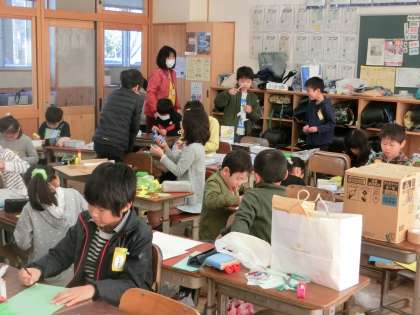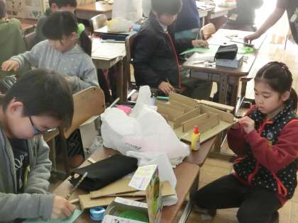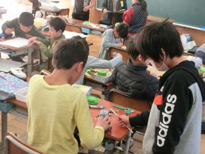 3年生の理科です。これまで、磁石に付く物や磁石の働きを比較しながら調べてきました。いよいよ学習のまとめに入り、磁石の性質を利用したゲームの作成に取り組んでいました。N極とS極を近づけると引き合うことを利用したり、N極とN極を近づけると退け合うことを利用したりして、それぞれの創意工夫を感じました。