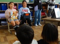 3年生の社会科で、知多市の歴史について各自がテーマを決めて課題追究し、新聞にまとめたものを、発表していました。ポイントをしぼって聞き手にわかりやすいように考え、発表していました。