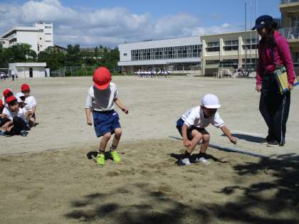 2年生の体力テストの様子です。運動場で、50m走、ソフトボール投げ、立ち幅跳びの記録をとりました。1年生のときの経験があるので、各学級、混乱することもなく学級委員の指示でスムーズに移動し、各種目の記録をとっていました。いっしょうけんめいがんばる姿が、とってもよかったです。