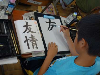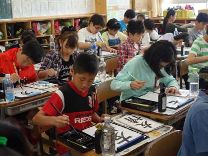 6年生の書写で、「友情」という字を書いていました。さすがに6年生。お手本を見ながら、自分なりの課題をしっかりと意識して、繰り返し練習をしていました。