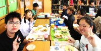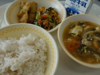 今日はサバの銀紙焼き、独特の香りが漂います。ごはんにぴったり合う、給食の定番メニューですね。生揚げのうま煮も、知多市の給食ではすっかり定番で、やさしい味です。