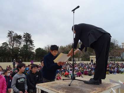 今日も、柔道やサッカーなどの分野でたくさんの八幡っ子が表彰されました。校長先生から表彰状を受け取る顔は、笑顔と誇らしい気持ちに満ちています。これからも、様々な分野で努力してほしいと思います。