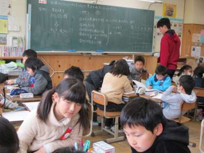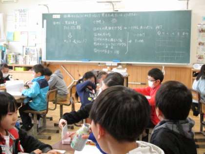 3年生の理科です。回路の学習が進んでいます。今日は、回路の途中に缶をつないで、電気を通すにはどうしたらいいかをグループで知恵を出し合い、実験で確かめていました。缶を振る、しばらく待つ、缶の表面を削るなど様々な意見が出て、とても熱心に取り組んでいました。