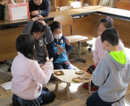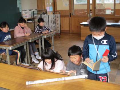 3年生の社会です。これまで、昔の道具やそれを使っていた頃の暮らしとその移り変わりについて学習してきました。先日の歴史民俗博物館での見学が貴重な経験となります。写真に登場しているのは、「ちゃぶ台」ですね。この学習のまとめとして、14日の学校公開日に劇化してお家の皆さんに公開するとのことです。練習の成果が発揮できるといいですね。