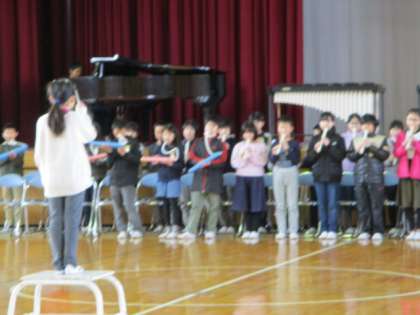 4年生の総合的な学習の時間です。先週は、インフルエンザが流行し、週明けを心配していましたが、どの学級もほとんど回復し、久しぶりに全体練習を行いました。ちょうど、「できるようになったこと発表会」のリハーサル中でした。本番を2日後に控え、みんなの気持ちも高まってきたようです。