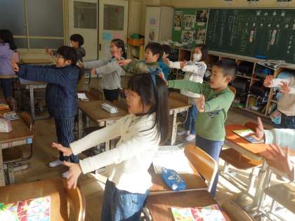 2年生の学活の様子です。1年生と同様に、6年生を送る会に向けて学級での練習をしていました。大きな行事ではいつも先頭になってリーダーシップを発揮してくれた6年生。感謝の思いを込めつつ自分たちも楽しみ、教室中に笑顔があふれていました。