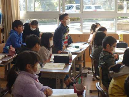 3年生の国語です。「ことわざについて調べよう」という学習をしています。今日は教科書にある、「犬も歩けばぼうにあたる」「さるも木から落ちる」といったなじみのあることわざについて、意味を予想していました。ことわざを学ぶと、表現の幅が広がりますね。ぜひ家庭でも使っていただければと思います。