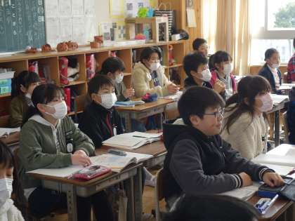 5年生の算数です。2年生と同様に図形の学習をしていますが、見取り図とか展開図といった大変高度な内容になっています。正確にかくことができないといけません。今日は、展開図をどのようにかいていけそうか考え、実際に正しい処理の仕方を学んでいました。