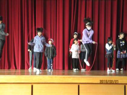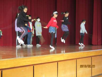 おはようございます。今朝は児童集会がありました。毎年恒例の、なわとび名人の発表会です。低学年、中学年、高学年それぞれの「名人」が、高度な技を披露しました。おもわず「すごい」という声が会場から聞こえてきました。