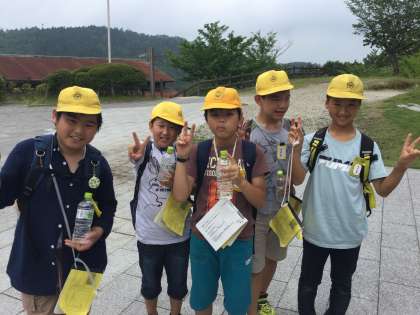 ウォークラリーがスタートしました。1組から班ごとに順番に出発します。まだ雨は降っていません。チームで協力して帰ってきてくださいね。