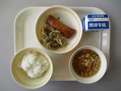 ごはん 春巻き ナムル 中華スープ 牛乳