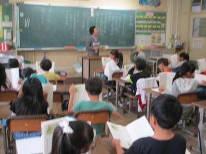 2年生の国語です。今日は、地の文の役、がま君の役、かえる君の役をグループごとに分担して音読に挑戦していました。手紙をもらったときのがま君やかえる君の会話を想像しながら何度も読みました。2人の思いが少しずつわかってきたかな。