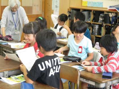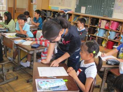 4年生の算数です。これまで、cm2を使って広さを考えてきました。今日は、教室の床の面積のように、cm2では数値が大きくなって不便なときにどうするかを考えていました。なぜ、1m2=10000cm2なのか、友だちに自分の言葉で伝えられたかな。