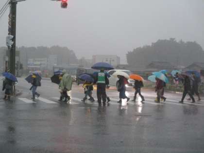 おはようございます。9時を過ぎ、やっと小降りになってきましたが、登校時間の大雨にはビックリしました。まるで、夕方のような朝の風景でした。そんな中、見守り隊の方々や交通指導員さんのご尽力のおかげで、八幡っ子は無事に登校することができました。本当に感謝しています。