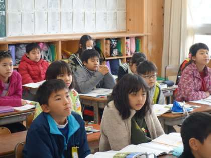 5年生が算数の授業で「円グラフや帯グラフの見方を学習しよう」に取り組んでいます。子どもたちは、教科書のグラフをよく見て、大きい順に並んでいることや一番最後に「その他」の項目があることを見つけています。この後、グラフ中の数値であるパーセントから、何倍になるかなどをも考えていきます。