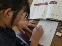 6年生の社会科です。今日の目標は「縄文時代の人々はどのようにくらしていたのだろう」です。狩りの生活で命の危険にさらされることや、食料の不安があり、らくに暮らせないなどの意見を発表しています。資料の細部を見て気づくことを、前に出てみんなに伝えています。