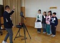 八幡中学校の入学説明会を本校の体育館で行っています。感染症対策として、中学校の先生に来校を願い説明をしていただきました。小学校との違い、中学校の一年の流れ、服装・身なりのお話などを聞きました。体操服や制服のサンプルを見て、実感がわいているようです。