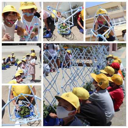 あさがおの つるが のびてきたよ