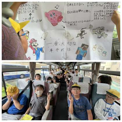 さあ、バスに乗って出発ー
