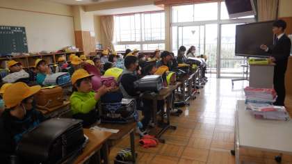 交通指導員の大森さん、PTAの生活部の方々にご来校いただき、下校指導していただきました。
