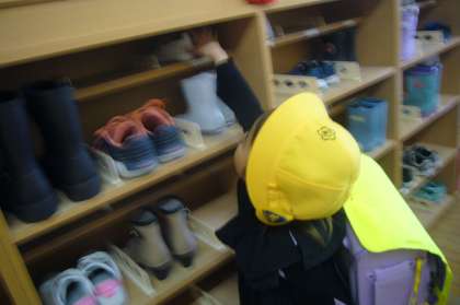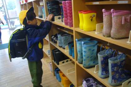 はいてきたくつは、1年生も教わったとおり、「かかとぺったん」にしてそろえて入れます。