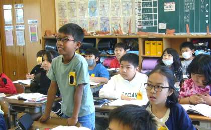 雨の日の気温の変化を折れ線グラフにして、わかることを話し合いました。