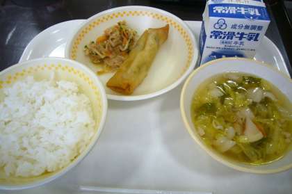 「はるまき」のぱりぱり感と「きりぼしだいこんのちゅうかサラダ」のしっとり感を楽しみながら、しっかり噛んでいただきました。