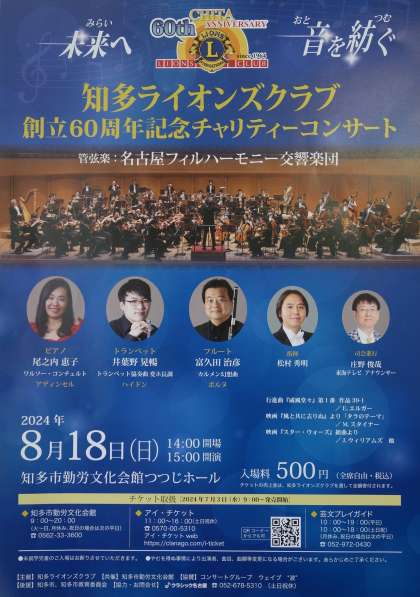 入場料500円とありますが、知多ライオンズクラブのご厚意で市内の児童生徒、保護者様は無料となります。
