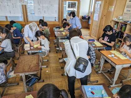 悪戦苦闘する児童も、「ちたっ子ボランティア」の方にご協力いただきながら、なんとか縫い終えていました。