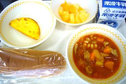 ふんわり「オムレツ」とさわやかな「フルーツポンチ」の組み合わせ、おいしくいただきました。