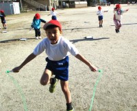 なわとびの れんしゅうをしています。いろいろなとびかたができて たくさんとべるよ...