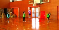 ボールをつかった運動で、ポートボールをしています。得点を目指して、チームでがんば...