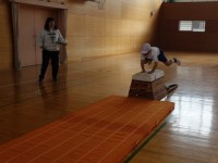 跳び箱で開脚跳びの練習をしています上手に跳べる人が多いですねお互いに教え合って、...