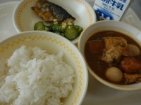 献立ごはん牛乳さばのしおやきうずらたまごいりにみそきゅうりとわかめのすのもの